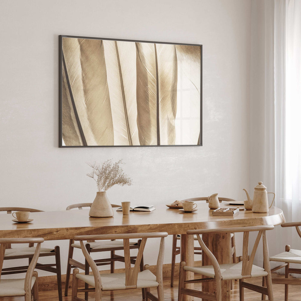 Introduce refined elegance to your space with Wings Botanical Print No. 1. As the first in a set of two, alongside Wings Botanical Print No. 2, this exquisite artwork captivates with its masterful close-up portrayal of honey-coloured feathers. Each detail, from the delicate strands to the subtle colour variations, is captured with precision, evoking a sense of luxurious simplicity.