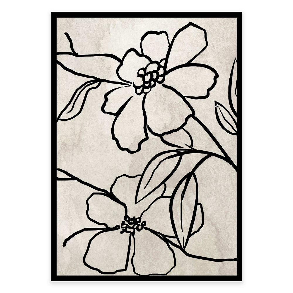 Blossom Hand Sketch 03 gracefully captures the intimate duet of two flower heads, converging their elegance and charm in a masterful black line drawing. Positioned against a soft, neutral canvas, the twin blossoms emerge with a quiet yet undeniable presence, their petals, curves, and nuances meticulously sketched to portray nature's intricate designs.
