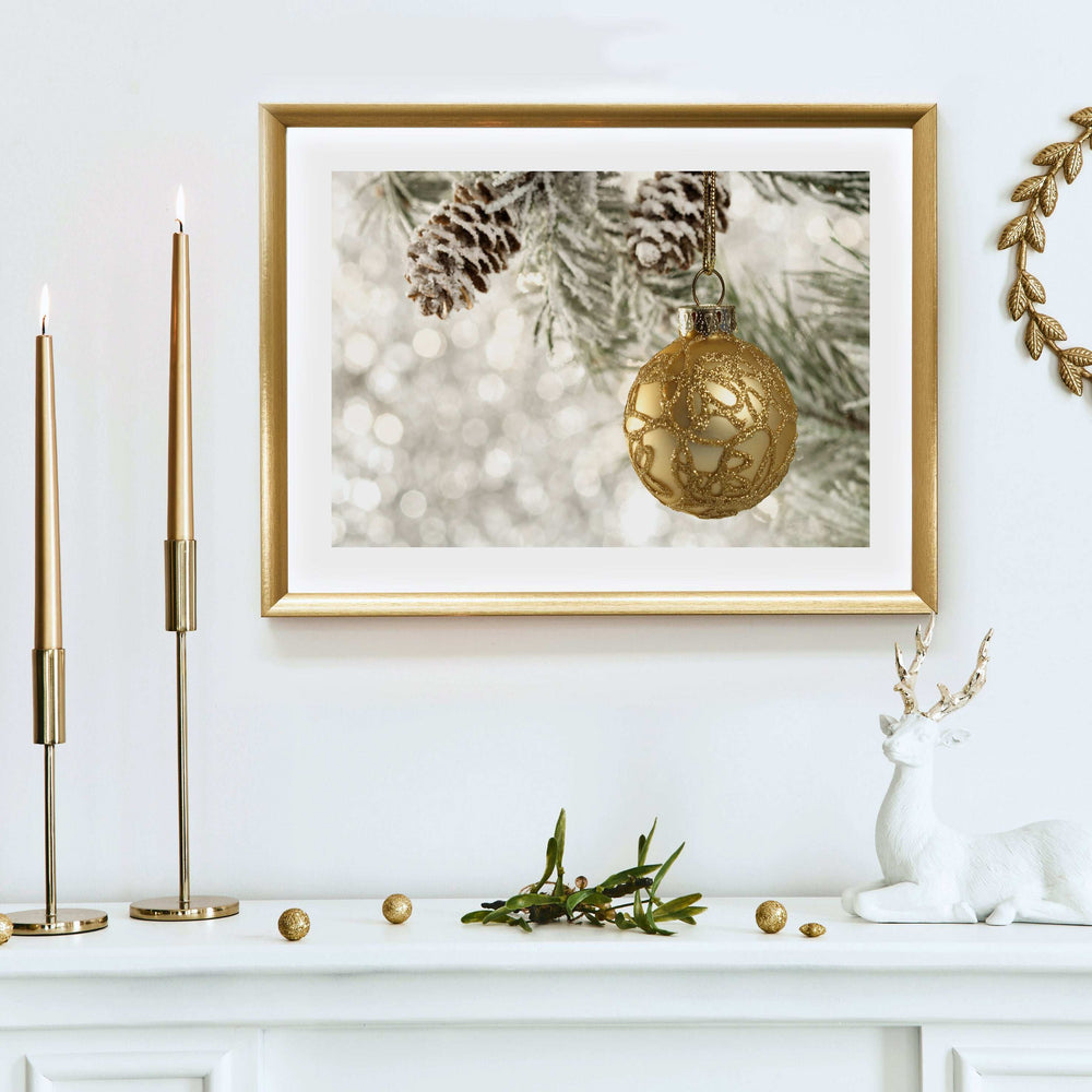 As the days grow shorter and the nights colder, let this artwork transport you to a world where golden baubles shimmer against a backdrop of freshly fallen snow. With the Glitter Ball wall art, every day in your home feels like a serene, sparkling celebration of the holiday season!