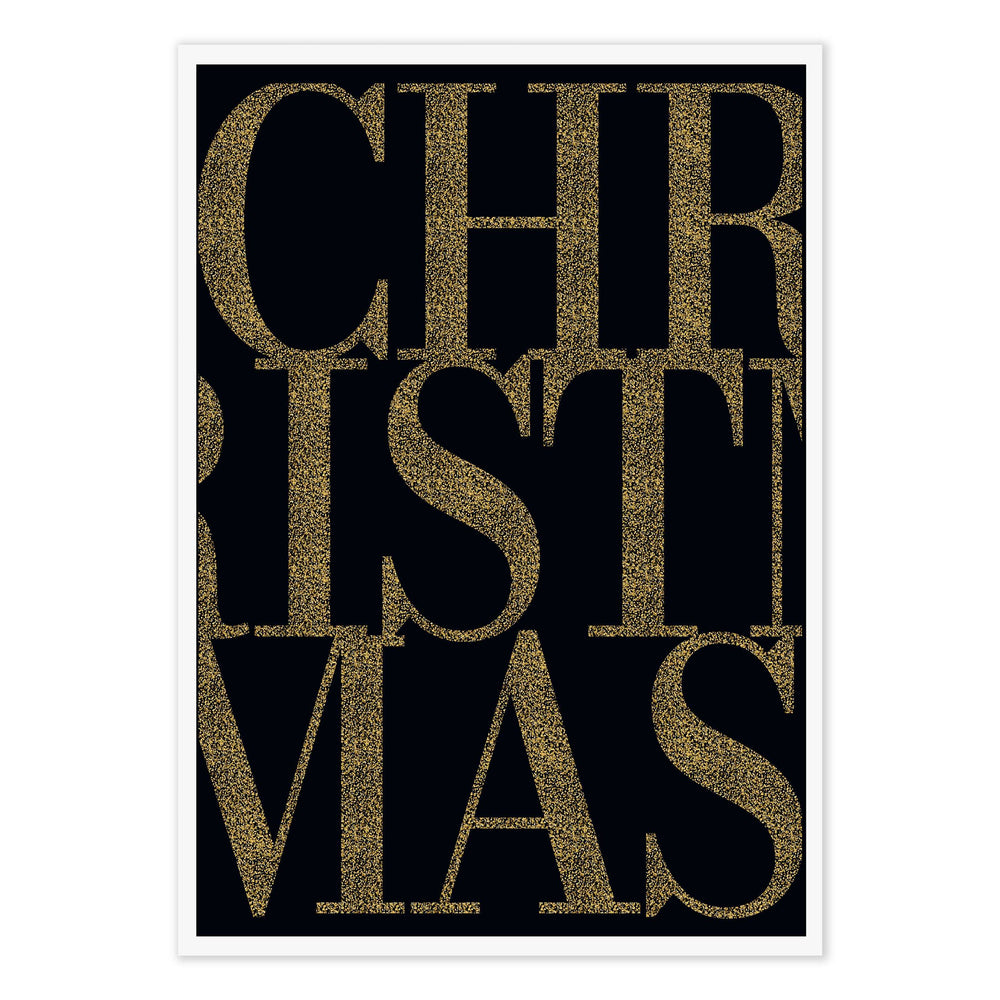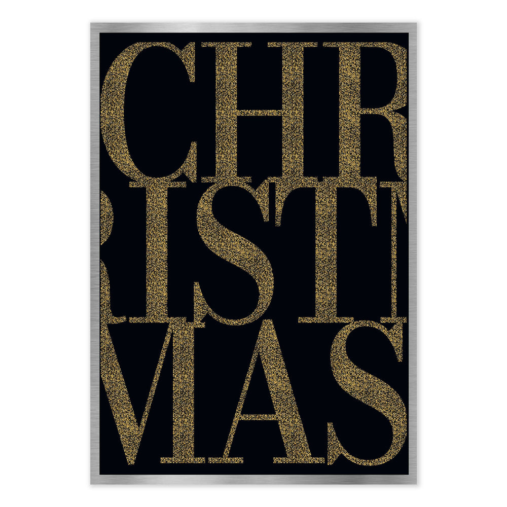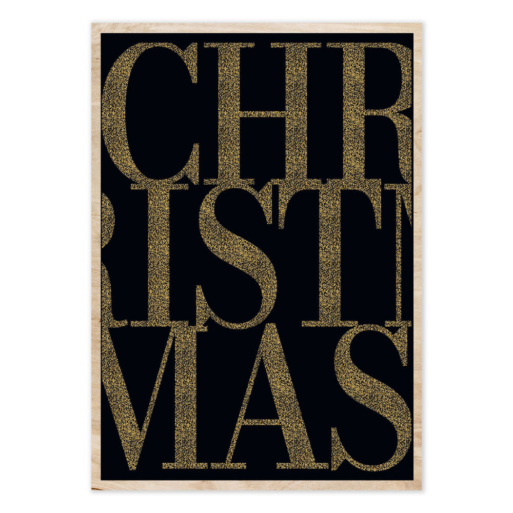 Dominating the canvas is the bold lettering of "Christmas," each stroke exuding confidence and holiday spirit. What truly sets this piece apart is the exquisite gold-look texture overlaying the lettering, rendering a lavish and polished finish that glistens as it captures the ambient light.