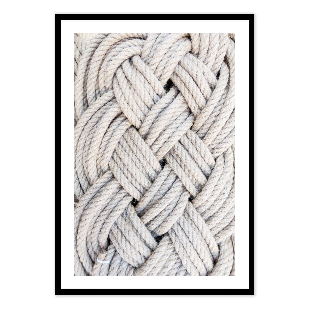 The neutral tones of the rope, rich with varying shades of beige, tan, and brown, bring warmth and depth to the print, making it a versatile piece that can effortlessly complement any interior setting, be it modern, rustic, or coastal.