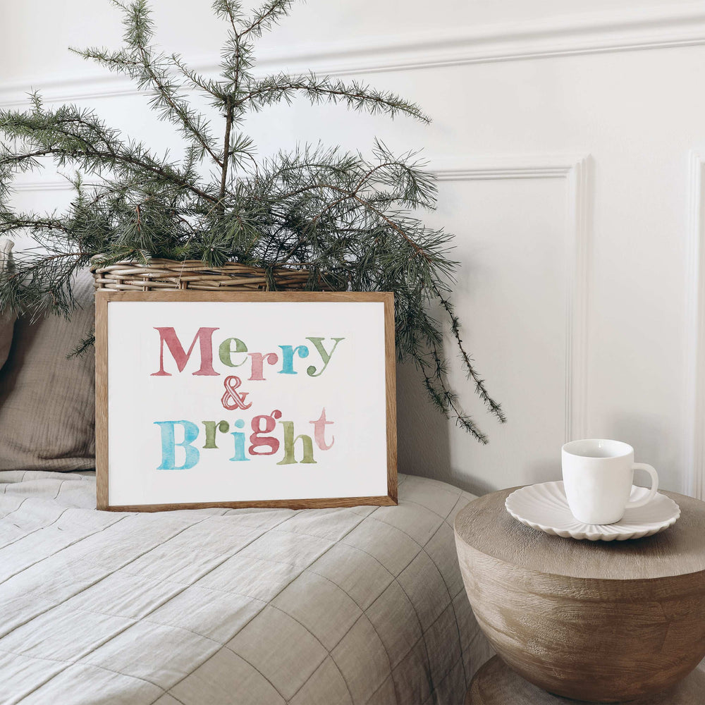 Perfectly versatile, the Merry And Bright Festive Print is a delightful addition to a gallery wall, nestling seamlessly amongst other cherished art pieces. Whether you're updating your living room or adding a festive touch to your bedroom, this print is an invitation to embrace and celebrate the holiday spirit.
