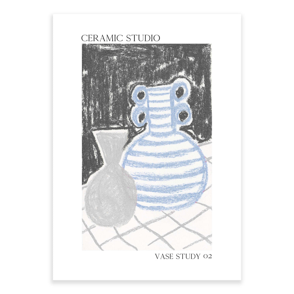 Ceramic Studio Vase Study 02 transports viewers into a world where the delicate craftsmanship of pottery meets the classic allure of still-life artistry. This stunning piece showcases two masterfully drawn vases, each radiating its own unique charm.