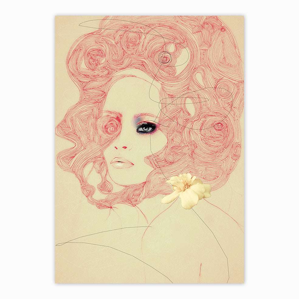 The delicacy of Viner's line work, combined with the striking contrast of the red hair against the soft white, creates a sense of ethereal beauty and strength. "Cricket" stands as a testimony to Viner's exceptional ability to capture the intimate dance between nature and the human spirit, making it a mesmerising addition to any art collection.